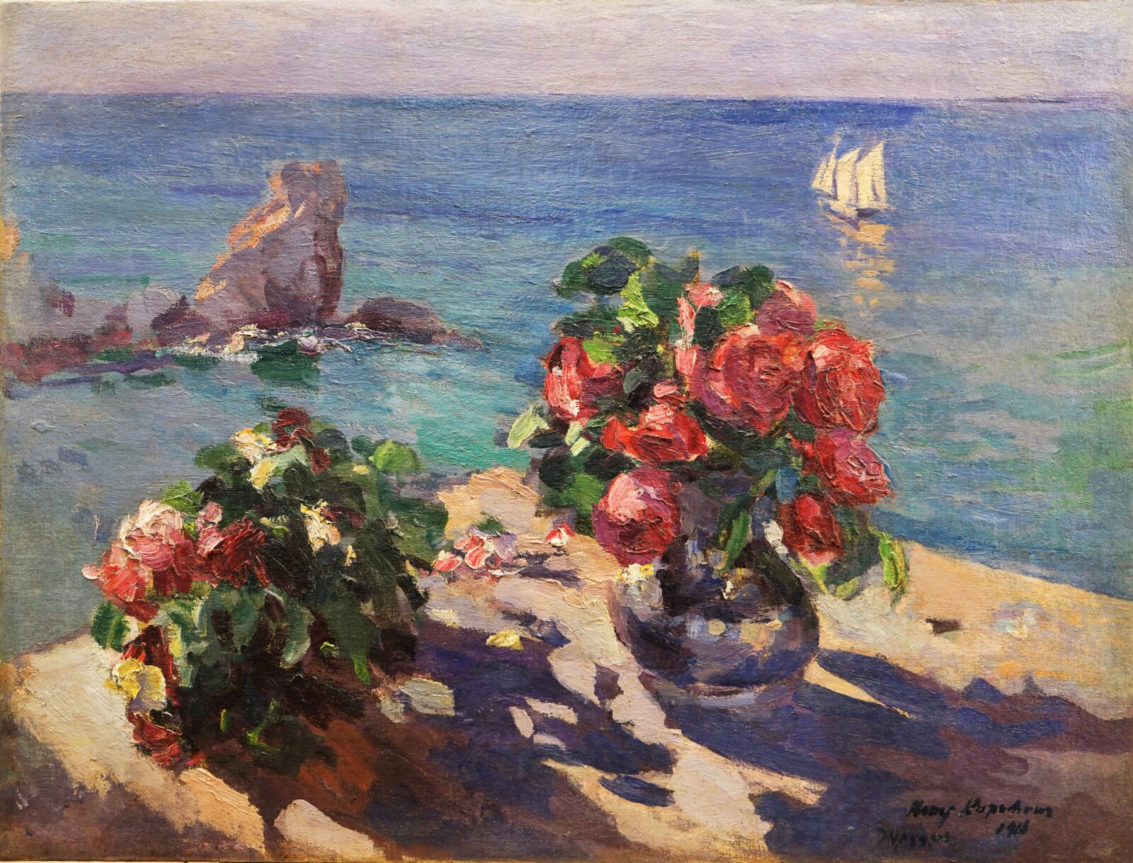 Слева: К. А. Коровин «Гурзуф. Розы». 1918 Частное собрание