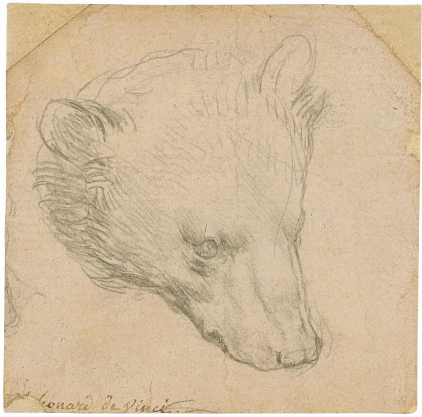 «Голова медвежонка» Леонардо да Винчи – ранний шедевр великого итальянца, созданный около 1480 года. Мастер использовал серебряную иглу для создания столь изящного рисунка. По всей видимости, рисунка являлся часть альбома, в который художник зарисовывал понравившихся животных.